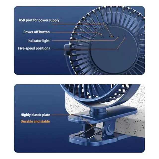 - STRONG GRIP CLAMP & 360 DEGREE ROTATION - Easily clip onto any surface with a strong clamp for a firm grip, even running upside down, and still be adjusted to point in every direction. 360-degree vertical and horizontal adjustment, enjoy the cool air from any direction and keep you cool all the time.