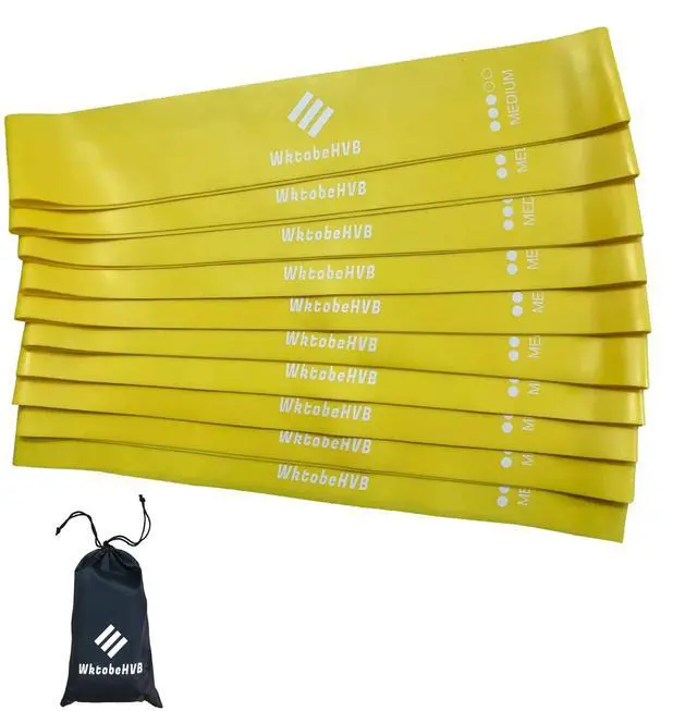 WktobeHVB Resistance Loop Exercise Bands with Instruction Guide and Carry Bag (10×2 Inch, Yellow 10 Pack (Medium))