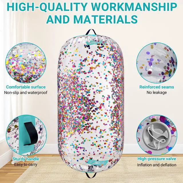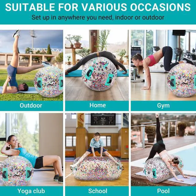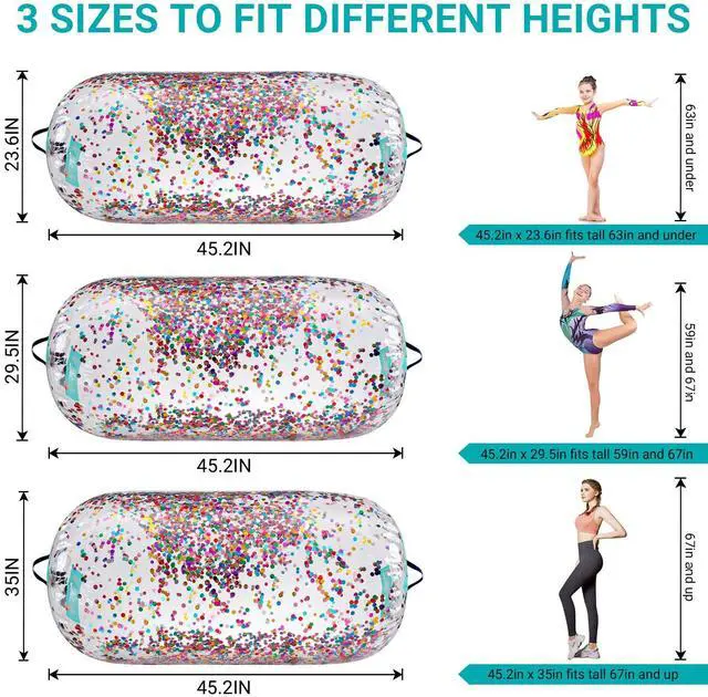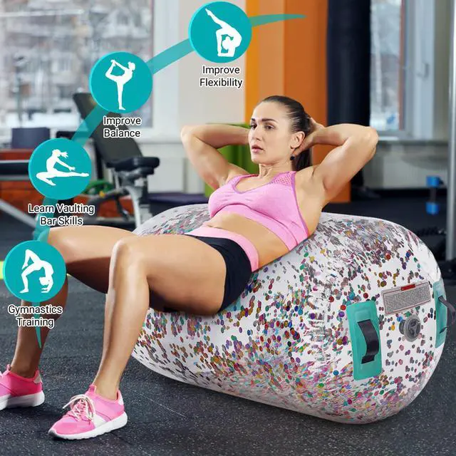The inflatable tumbling roller is made of thickened and wear-resistant PVC material, and the double-layer material strengthens the isolation layer to ensure that the gas is not easily leaked and enhance durability. Through hot-pressing stitching technology, the structural strength of the gymnastic barrel are effectively improved