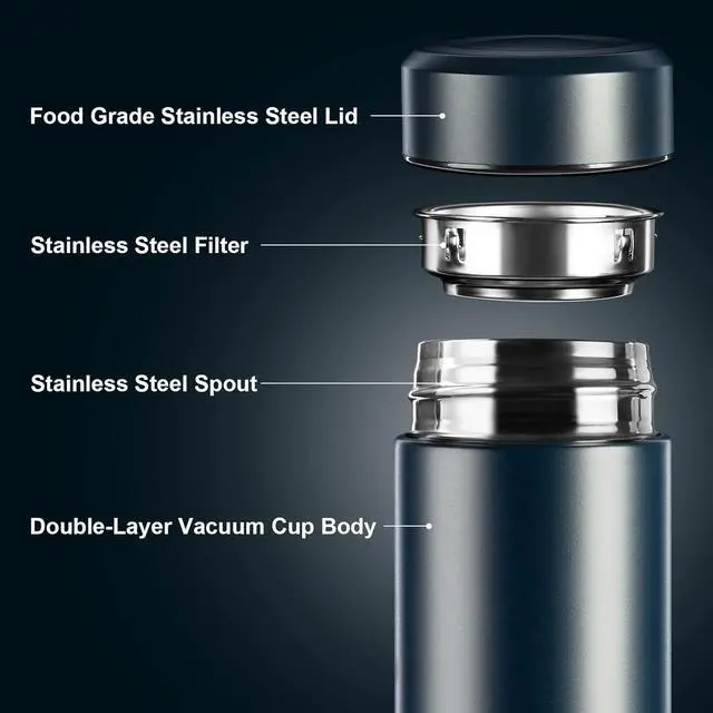 Sealed and leak-proof: The lid of the water bottle contains a food-grade silicone ring which is well-sealed and does not leak when shaken or inverted. Insulated water bottle is perfect for everyday use running hiking camping and more.