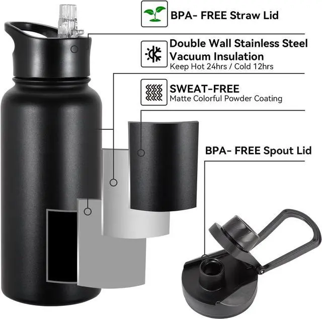 Lids: The stainless steel water bottles come with 2 leak proof handle lids (straw lid and wide mouth lid) safe and easy to carrySuperior