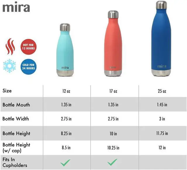 Functional Style: Mira bottles have been mindfully designed with leak-proof and spill-proof features for convenient portable travel. As experts in stylish and insulated drinkware our travel water bottles come in a wide variety of fun colors and unique prints.