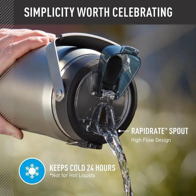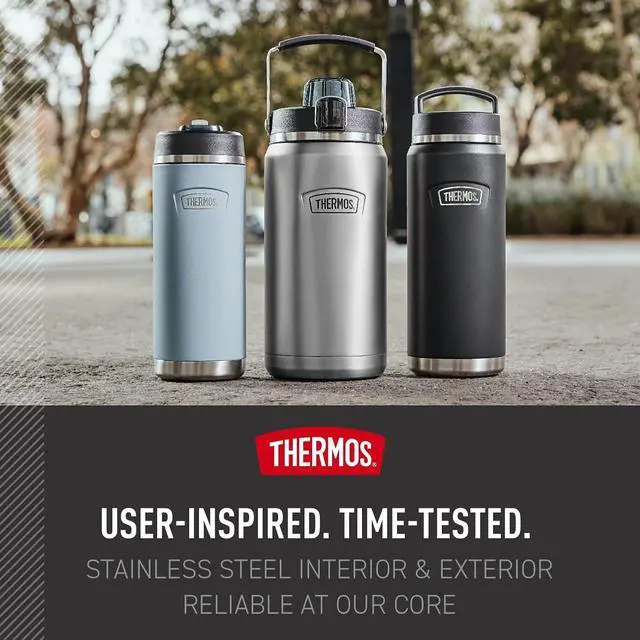 Stays cold: THERMOS vacuum insulation technology keeps drinks cold for up to 24 hours; No matter what unexpected adventures you encounter at least one thing can stay just the way you like it; Not for hot liquidsHygienic high-flow spout: Equipped with a RAPIDRATE high flow spout for optimal flow and DURASHIELD hygienic covered spout that includes a locking ring that helps secure the lid in placeDaily durability: Perfect insulated water bottle for daily use; Made with high-quality 18/8 stainless steel construction to handle drops dings and provide everyday durability and reliability; Comes in a variety of colorsEasy