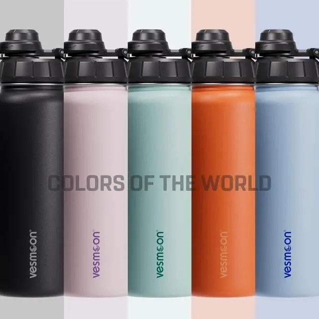 Made of food grade stainless steel rust resistant and is BPA free. UNRIVALED THERMAL PERFORMANCE - This water bottle with filter comes with a spout lid. The FlowSip lid allows you to sip water easily. Our chug lid is ergonomic smart and convenient for direct drinking. With our Extreme Seal technology rest assured that your drinks are safely contained in a leak proof travel water bottle. Add it to cart now! COLORS OF THE WORLD - Vesmoon Vessence colors are inspired by worldwide locations. Bali Denali Mojave and Santorini. This travel water bottle is a must for your next adventure.