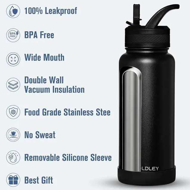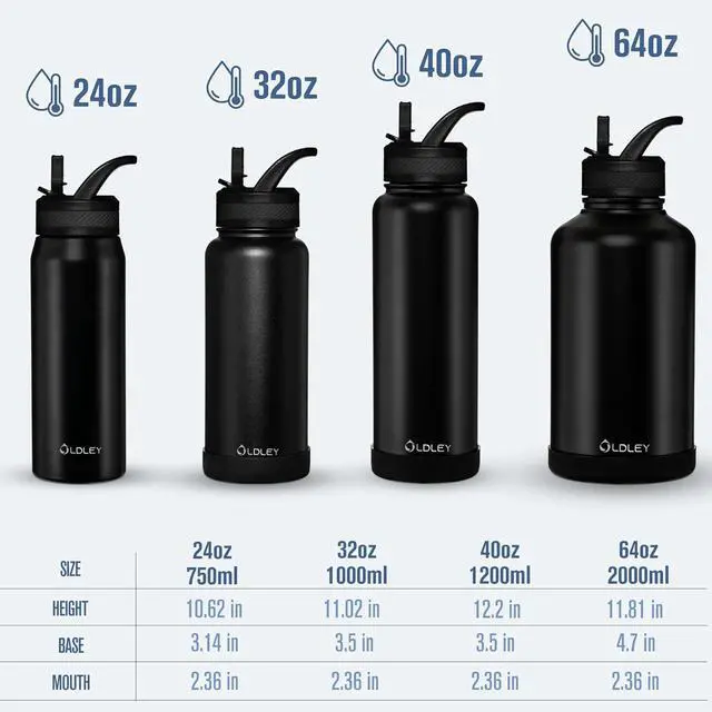 INSULATED WATER BOTTLE: OLDLEY metal water bottle insulation maintains drinks cold for up to 24 hours and hot for up to 12 hours. Vacuum insulation ensures superior temperature retention keeping drinks cold for hours ideal for outdoor events or traveling.