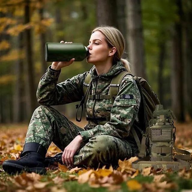 MULTI-FUNCTIONAL WATER BOTTLE SLEEVE: This military water bottle bag is crafted from durable 1050D nylon making it tear-resistant easily removable and washable. The camo water bottle pouch features a spacious front zippered pocket that can hold your Bluetooth earbuds keys phone wallet and other personal items. Additionally the pocket has Velcro allowing you to attach your own custom patch.