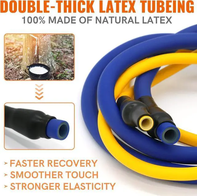 RESISTANCE BANDS: Our resistance bands for working out are made of 100% healthy and environmentally friendly natural latex material, which have smoother touch, stronger resistance and better wear resistance! The exercise bands resistance have 5 different strength levels, corresponding to 5 different colors (yellow 5 lbs, green 15 lbs, red 20 lbs, blue 30 lbs, black 35 lbs), which can be used alone or stacked in any combination to a maximum equivalent of 150 lbs