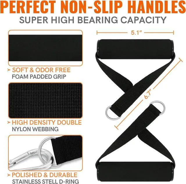 LOAD-BEARING UPGRADE ACCESSORIES: The resistance band set includes 5 workout bands resistance, 1 door anchor, 2 cushion handles, 2 ankle straps and 1 carrying bag. The door anchor for resistance bands, the ankle straps and the resistance band handles have been enlarged and widened to achieve easier grip, greater load bearing and safer exercise environment! Besides, the foam handle is soft and comfortable, the nylon fabric is durable and wear-resistant, and the metal hook and loop is strong