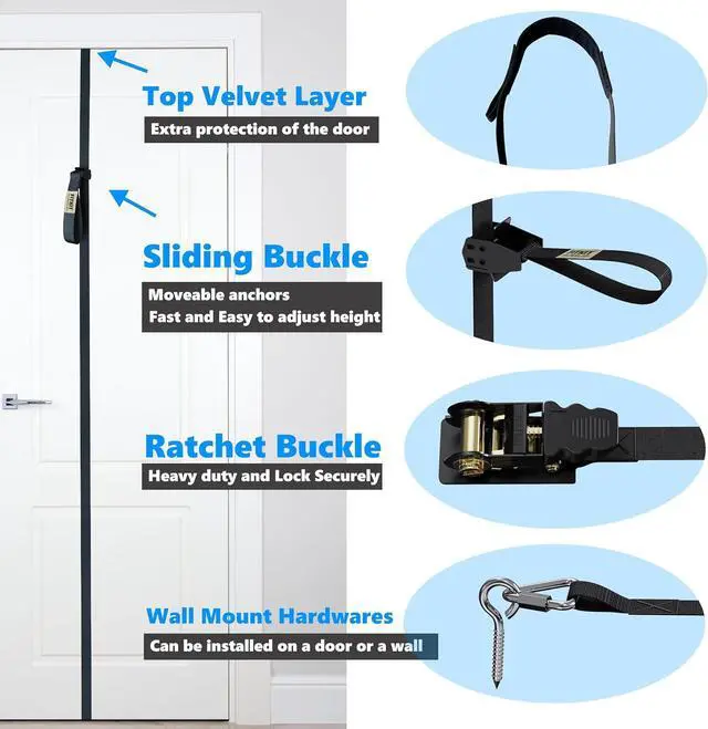 Versatile Mounting Options: Whether you lack a suitable door frame or prefer wall mounting, the Versatile Anchor Straps have you covered. They are designed to be used on both door frames and walls, providing unmatched flexibility for your home gym setup, achieve your fitness goals with ease.