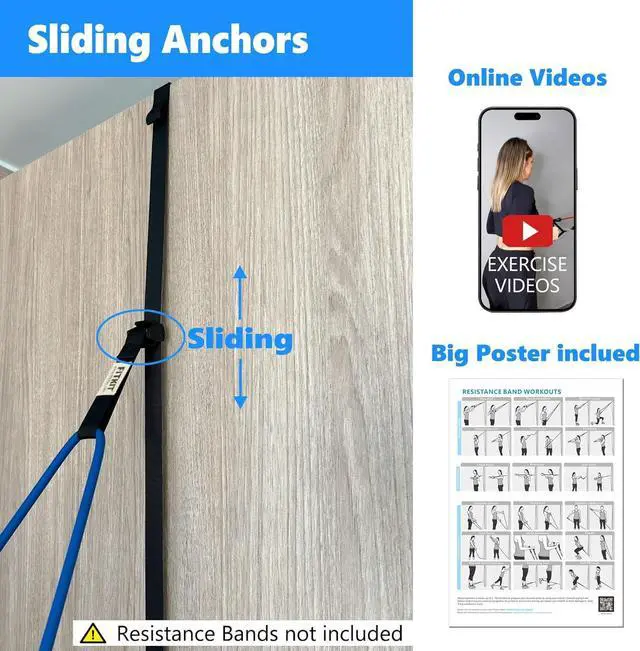 Exercise Poster and Video included: Turn your home, office, or travel destination into a fitness haven with these versatile, secure, and robust exercise accessories. Get ready to reach new heights in your fitness journey, wherever you are. The anchor bands are engineered for strength, stability, and versatility, ensuring you can take your fitness journey to new heights.