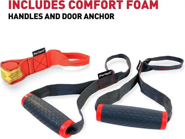 VERSATILE: Cloth loops on bands attach almost anywhere; padded handles, pullup bars or use the door anchor to turn any doorway into a gym