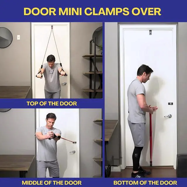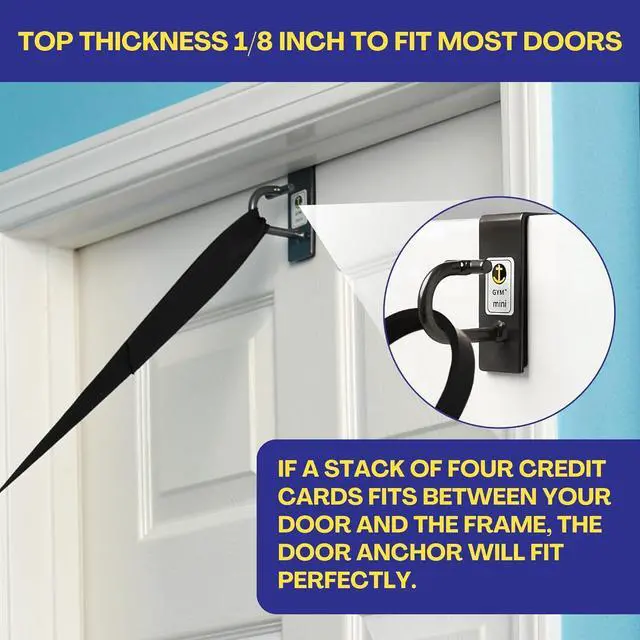 4[Fits Most Doors - Simple Compatibility Test] Our door anchor resistance bands fits 90% of interior doors. If you can slide 4 stacked credit cards between your door and frame, youre good to go. Exercise door anchor can even be clamped at the top, bottom, or side of the door.