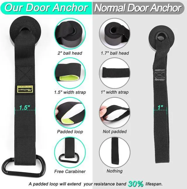 --PADD LOOP--: The heavy duty door anchor comes with a protective sleeve to protect your resistance bands from regular wear and tear and its ideal for upper-body training exercise.