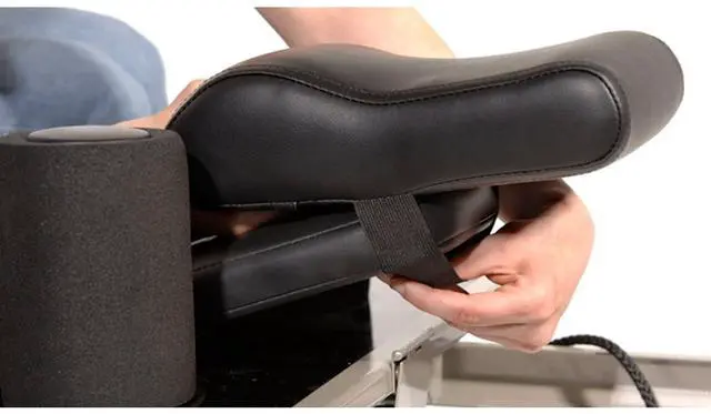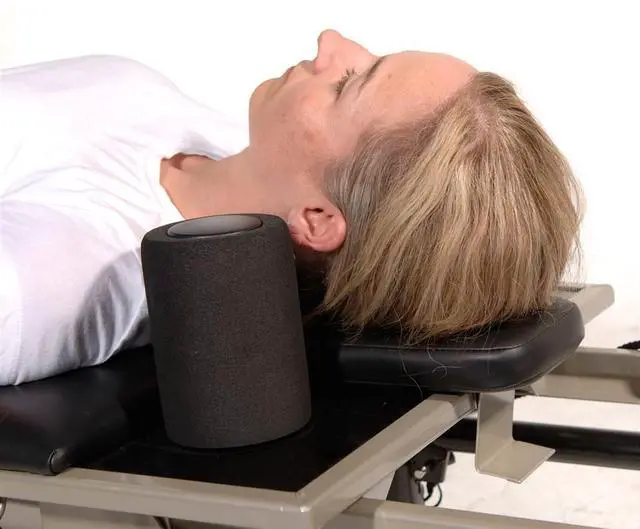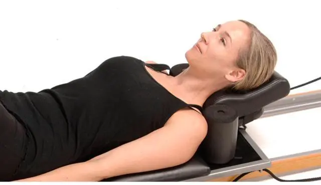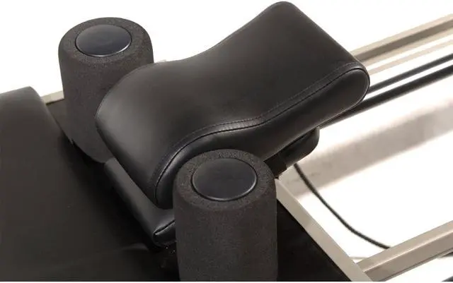 COMFORT AND SUPPORT FOR BETTER PERFORMANCE For more comfort and support during your Pilates workout, invest in the AeroPilates Head and Neck Support Pillow. By contouring the natural curve of your neck, the pillow improves postural alignment for reformer exercises that are performed while lying on your back. However, do not use the pillow for Pilates exercises that require you to lift your hips higher than your head for this may result in pain and possibly injury. With the reformer headrest in the flat position, place the Head and Neck Support Pillow on top of the headrest with the thickest part nearest the carriage so the thick part will be under your neck.