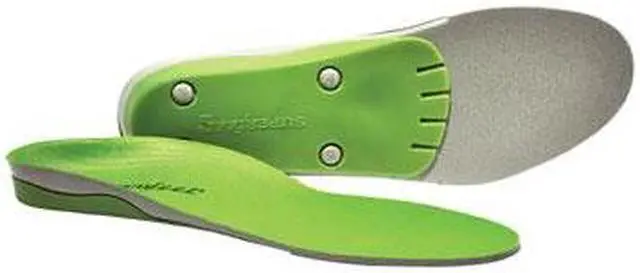 The Superfeet GREEN is our most popular insole and has been on the market for over 30 years. It is designed primarily for footwear with a removable insole and is the recommended choice for those seeking maximum support and shock absorption. Stay active and comfortably with the Premium Insole for maximum support. Superfeet's biomechanical shape and design supports and aligns the bones of the foot, helping to prevent heel and ankle pain, plantar fasciitis, knee stress and hip pain. Encapsulating Stabilizer System [ESS] provides optimal underfoot support through the unique combination of our stabilizer cap and the shape and design of the foam full length. The Superfeet Green Premium Insole helps maximize the fit, comfort and performance of your shoes. Add maximum support, shock absorption and stability to your athletic, industrial or everyday footwear. Superfeet Green's extra deep heel cup cradles your heel’s fat pad for maximum natural shock absorption. The biomechanically-correct arch s