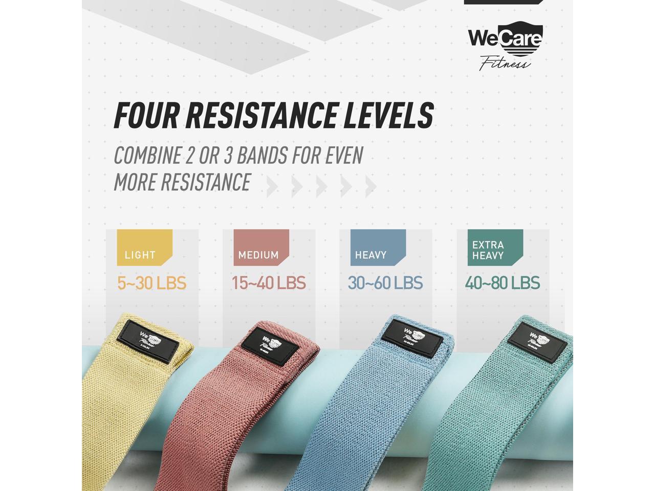 WeCare Fitness Full-Body Workout 4 Pack Resistance Bands - 4 Levels of Resistance - Mesh Carrying Bag Included