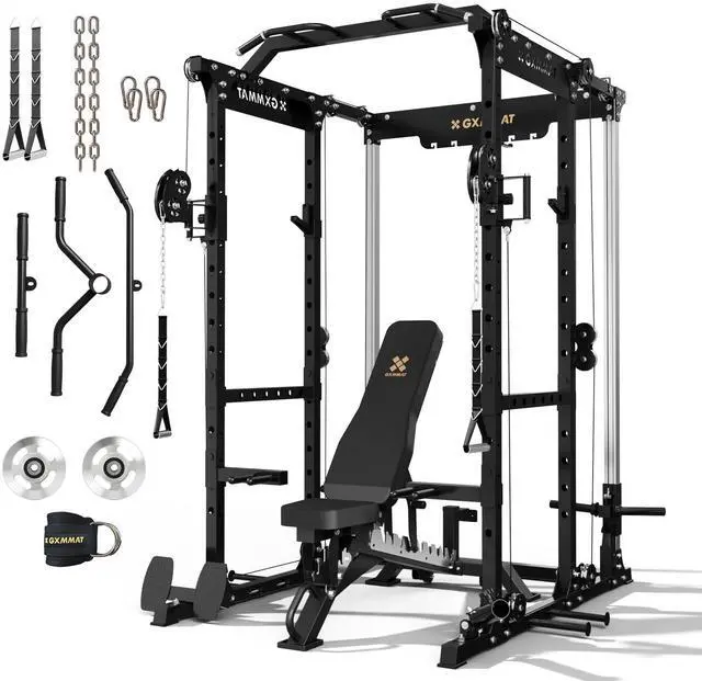 GXMMAT X6 Power Cage, 2200LB Multi-Function Power Rack with Independent Dual Aluminum Pulley System, Squat Rack for Home Gym Strength Training Equipment, Heavy-Duty Steel Construction