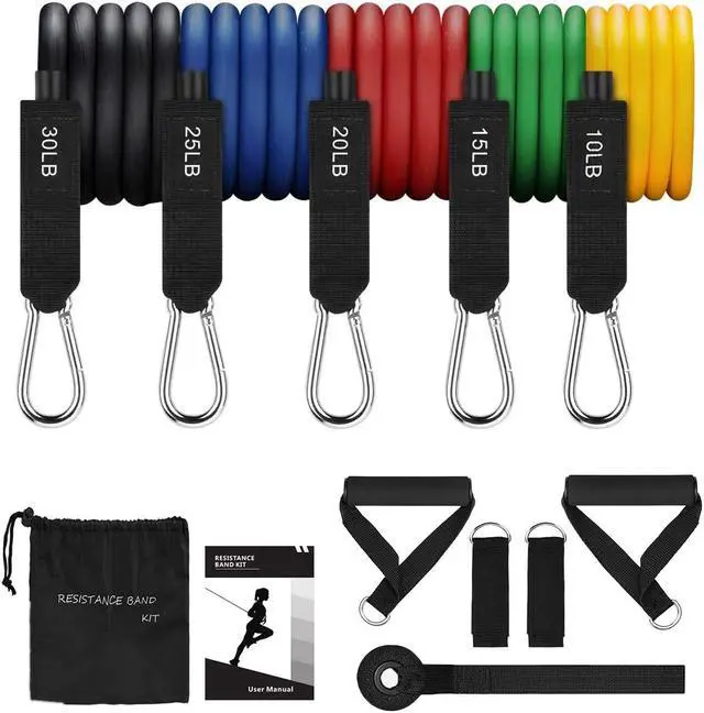 Nothing’s sadder than poor rubber that pulls and chafes.Made of natural latex, these resistance bands set are elastic, durable, The real latex tube will not stick, and is not easy to be damaged. 5 bands can be used alone or stacked in any combination of intensity from 10 lbs to 100 lbs.