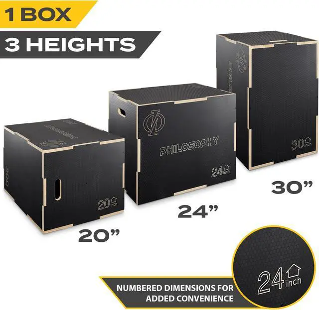 Every aspect of this exercise box was thoughtfully designed to ensure safety and to allow for maximum performance. Three different heights are available to meet your needs, whether you are aiming for greater or lesser challenges. Crafted of premium, high-grade plywood with a non-slip, textured finish. This plyometric box can support ample physical action. Internal braces are built-in for added support. Additionally, all edges are sanded smooth to ensure safety and to reduce the risk of injury. Whether you are jumping on it at full force, using it for steps, squats, or pushups, it will handle it all with ease.