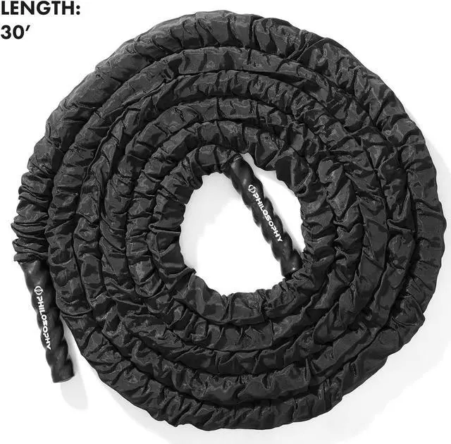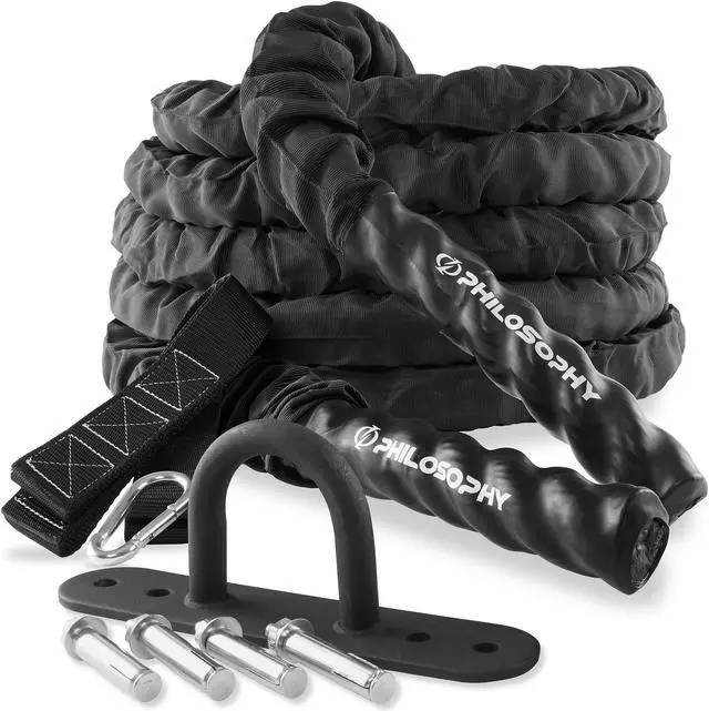 Philosophy Gym 30 Foot Exercise Battle Rope 1.5 Inch Diameter with Cover and Anchor Kit