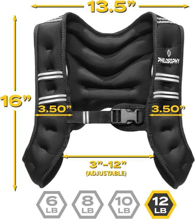 Multiple size options: Our weighted vests are weighted in pounds and are available in the following sizes: 6lbs, 8lbs, 10lbs, & 12lbs.