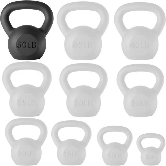 Each kettlebell is marked in pounds to easily identify each weight during your workout. These cast iron kettlebells are available in a variety of different weights from 5 pounds to 50 pounds, allowing you to choose which weights are suited for your exercise needs. With the kettlebells thoughtful design and premium quality construction, it will provide you strength and durability to withstand indoor and outdoor training.