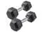 The rubber coated hex dumbbells feature a knurled ergonomic handle for a comfortable, secure grip. The hexagon shaped heads on each end prevent rolling during your workout and provide an easy storage option when they are not in use. The weights are sold in multiple options including both as a single dumbbell or a set of two. The dumbbells are marked in pounds to easily identify during your workout. They are available in the following individual weight options: 3, 5, 10, 12, 15, 20, 25, 30, 35, 40, 45, and 50 pounds.