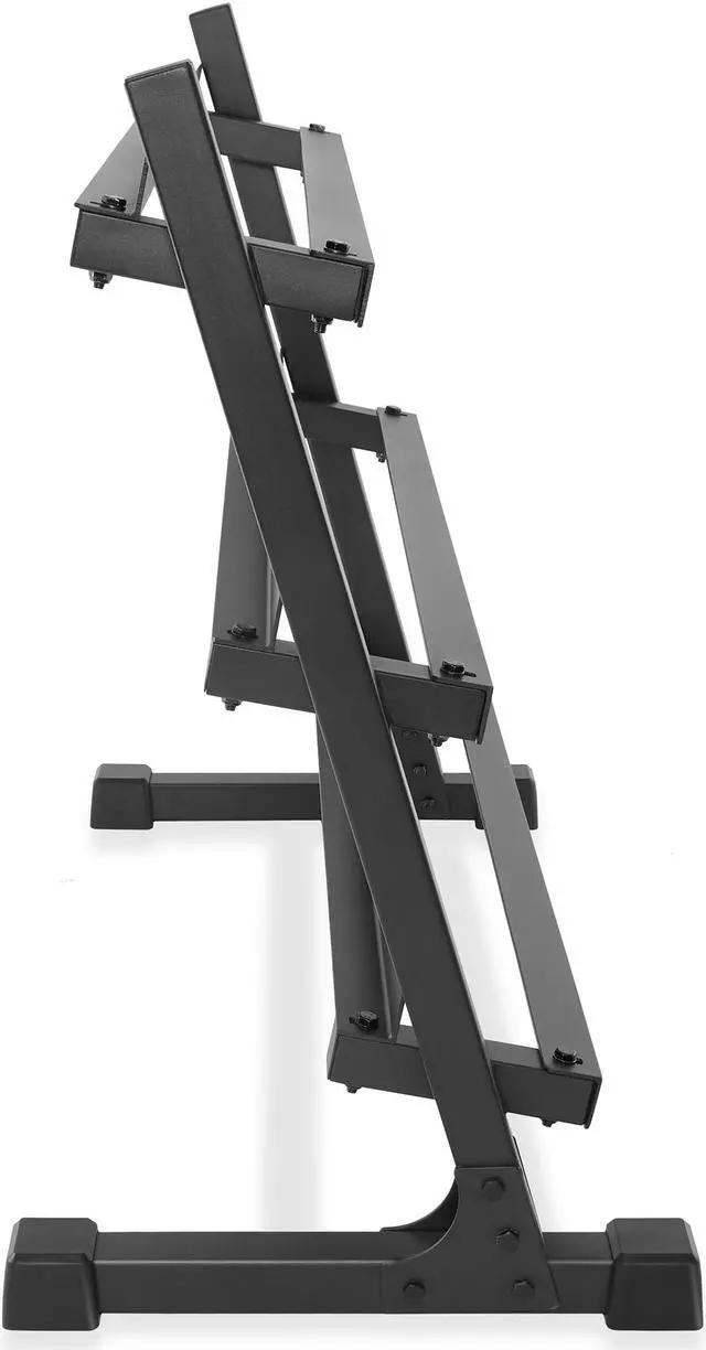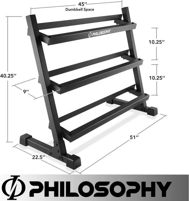 The Philosophy Gym Commercial 3-Tier Dumbbell Weight Rack with angeled shelves is an excellent option for any lifter, fitness enthusiast, or bodybuilder. Having an assortment of dumbbell weights is an absolute must for your arsenal of gym equipment, so having a convenient place to store them is just as important. Weightlifting from the comfort of home requires the right tools and equipment for successful training. The Philosophy Gym Commercial 3-Tier Dumbbell Weight Rack can hold up to 550 lbs. of your favorite dumbbells. Perfect for home gyms, garage gyms, and ensuring you have the best equipment for working out anywhere, this weightlifting dumbbell rack is excellent for keeping your gym organized and safe.