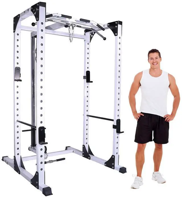 Team up our heavy-duty DF825 Squat Rack with the DF830 Lat Attachment, and you have a winning combination. If youre serious about strength training, a squat rack is a necessity, and by adding this multi-use Lat Attachment, you have your choice of a multitude of exercises. The DF825 Squat Rack features a heavy-duty frame and solid steel spotter bars to ensure you are safe when lifting alone. The DF830 Lat Attachment features a heavy-duty steel tubing frame, aircraft quality cables, and fiberglass-reinforced steel hub pulleys that will last through years of use.