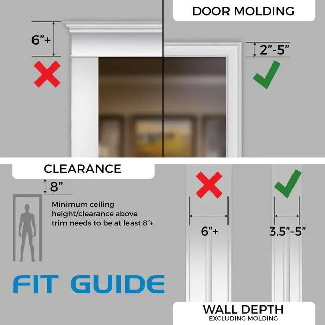 - Universal-fit, expandable bar fits doorways 24 to 36 inches wide with up to 3.5-inch wide molding