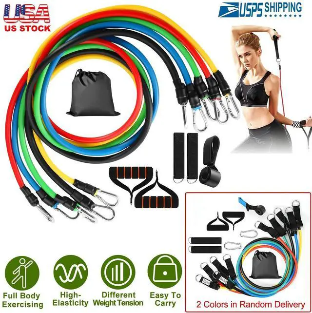 Stackable Bands For Adjustable Resistance Levels:The 5 color-coded bands are designed with different weight tension(Yellow-10lbs,Red-15lbs,Blue-20lbs,Green-25lbs,Black-30lbs). Each band is 48inches in length and stackable in any combination with other bands up to a maximum resistance level up to 100lbs,helping you to choose the suitable fitness level and get the optimal workout result.