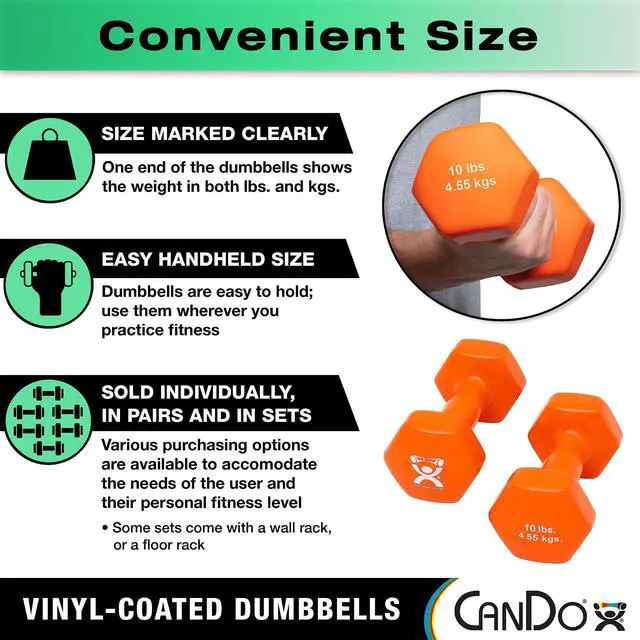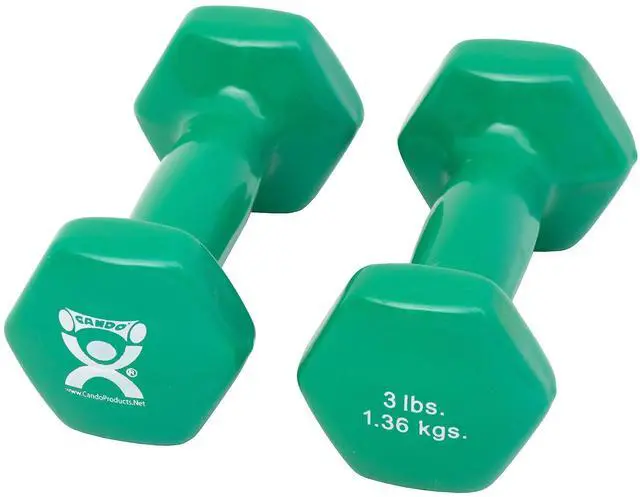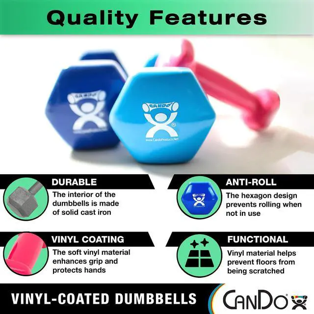 CanDo vinyl coated dumbbells are made of cast iron and are conveniently color-coded according to how much they weigh. These dumbbells feature a vinyl coating which is comfortable to grip and does not allow the dumbbells to scratch the flooring. They are ideal to use for upper body exercises, physical therapy, weight training and toning workouts. These dumbbells come as a pair and are clearly marked in pounds and kilograms. These Violet dumbbells weigh 2-pounds each.