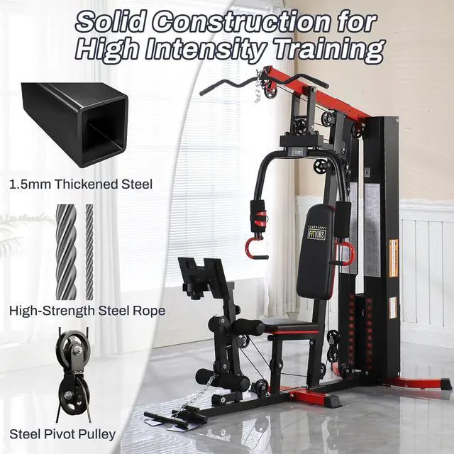 Fitvids Home Gym Equipment, Multifunctional Full Body Workout Weight Machine Station with Weight Stack, All in One Exercise Equipment with Pulley System & Seated Rowing for Home Gym Strength Training