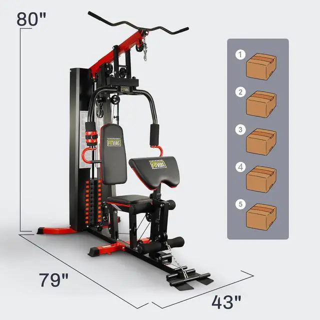 Space-Saving: Exercise equipment size of 42"x 76"x 80", Train hard without sacrificing living areas and help achieve muscle-building effects. Fitvids compact home gym fits apartments, garages, and basements. Soft seat cushion provides comfort for every movement