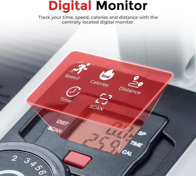 Digital Performance Monitor with Scan Function: Centrally located LCD display tracks essential workout metrics including time, speed, distance, and calories burned in real-time; scan function automatically cycles through all variables; monitor progress without smartphone requirement for straightforward fitness tracking