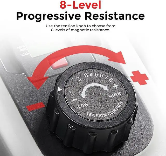 8 Levels Adjustable Magnetic Resistance: Customize workout intensity with easy-turn tension knob offering 8 progressive resistance levels from gentle rehabilitation sessions to challenging muscular endurance training; belt drive magnetic system provides smooth, quiet, maintenance-free operation without friction noise or wear over time