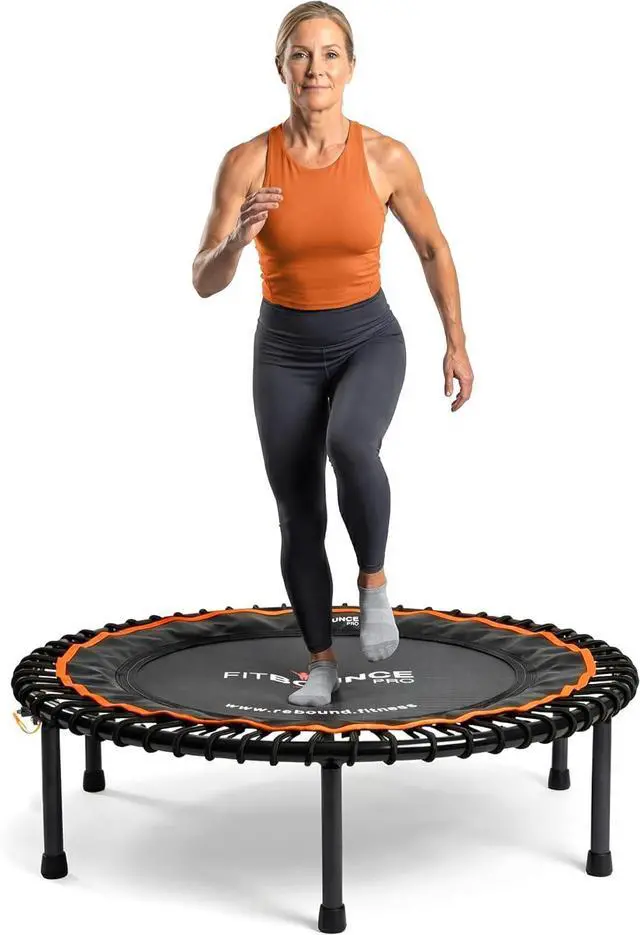 EASY TO STORE: Our indoor exercise trampoline arrives fully assembled with robust, spring-loaded folding legs and a half-fold design for quick setup and storage. The carry bag makes it portable, and its supplied from the USA with spare parts always available for long-term use.