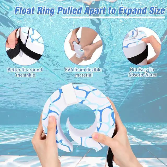 [EASY TO ADJUST & WEAR] Float ring pulled apart to expand size, The inner circumference size can be adjusted to a range from 8 in20cm to 13 in 33cm. Perfect for arm and ankle sizes. Adjustable size design allows you to easily put on and take off the Water Ankle Weights conveniently.