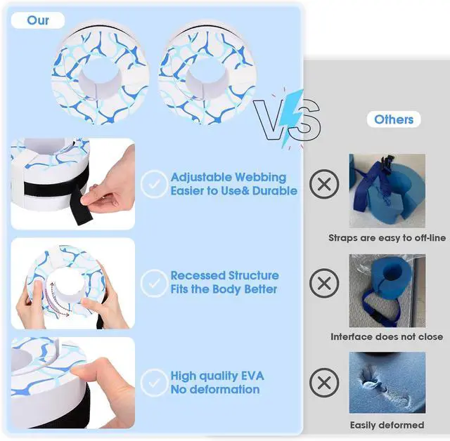 [ERGONOMIC DESIGN] Compared with others on the market, Our Swim Aquatic Cuffs are ergonomically designed with a recessed structure, enabling it to fit around the ankle, wrist or arm. Stronger wrapping keeps the cuff stay in place when using in the water.