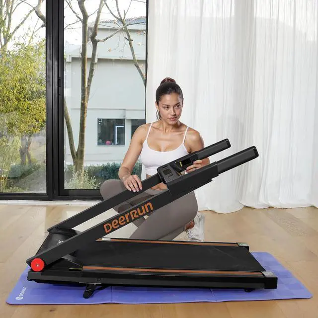 Treadmill for Home Small Spaces Compact foldable treadmill fits apartments and small rooms; store under furniture and roll away on built-in wheels