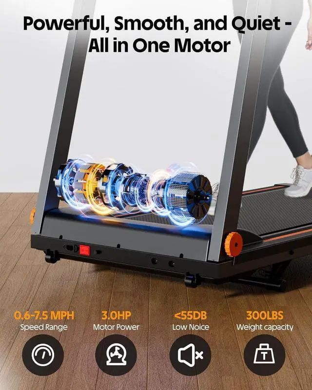 3.0 HP Motor Performance Strong motor supports stable speed from 0.67. 5 MPH for walking, jogging, and running with reduced vibration