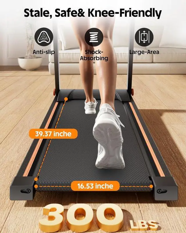 300 lb Capacity, Stable Deck Supportive frame and anti-slip belt help provide a safer, steadier feel for daily workouts