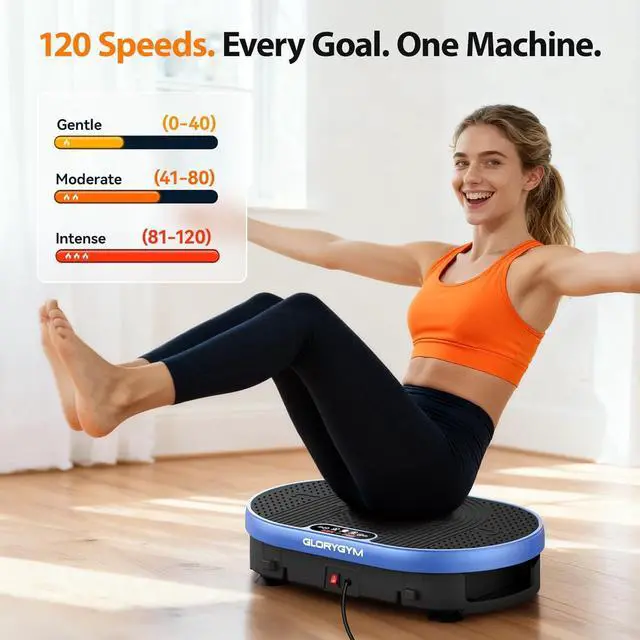 Full Body Shaping & Rapid Fat Burn: With high-frequency vibrations, the Glorygym vibration plate quickly activates muscles across the body, promoting fat burning more effectively than running. Just 10 minutes of use per day helps you achieve your ideal figure and sculpt your body;