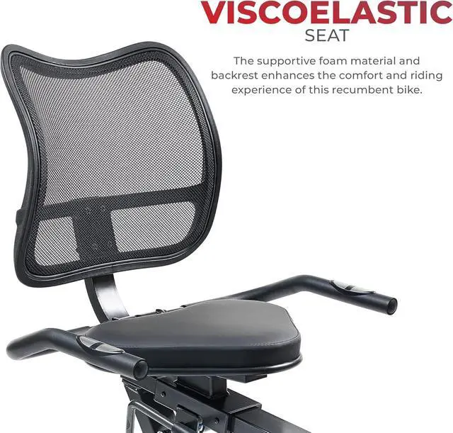 VISCOELASTIC SEATSpecialized supportive foam material and breathable backrest enhances the comfort and riding experience of this stationary recumbent bike.