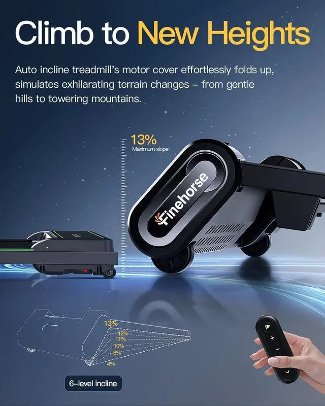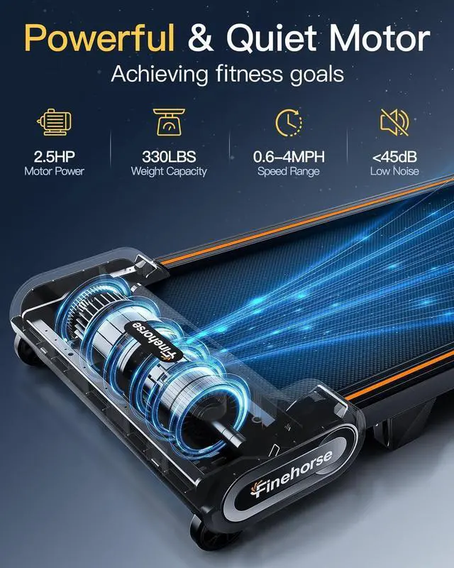2.5HP Powerful & Quiet Motor: Finehorse Up Pad walking pad treadmill is equipped with a 2.5HP motor, which is stable and reliable, with a maximum weight capacity of 330 pounds and a speed of 0-4 mph can meet the need of exercise such as climbing, walking, jogging and running. The remote control, easily adjust to the appropriate slope