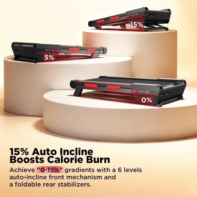 Ares 11 Elite 15% Incline Burns 80% More CaloriesTake your daily walk to the next level with auto incline. Unlike standard flat walking pads, the 15% incline walking pad boosts calorie burn from 291 to 883 kcal/hrgiving you professional hill-climbing results right in your home or office. Maximize fitness in less time.