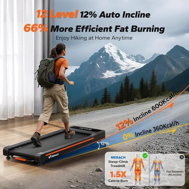 12 % Auto-Incline Walking Pad Remote-Controlled Climb | Burn 30 % more calories on slopes while reducing knee strain. Switch to Walking Pad resistance-climb mode for glute activation ideal for rehab-friendly sessions or home HIIT. Seamless incline adjustments (012 %) without breaking stride.