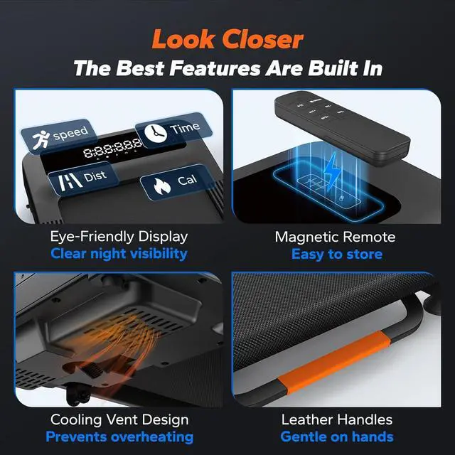 3.5 HP Brushless Beast Motor 25 dB Silent | 10-Hour Nonstop Commercial-grade brushless motor powers this treadmill for home up to 4.0 mph sprint speeds with ultra-low noise (25 dB) and zero overheating. Adjust speed/incline via handheld remote perfect for marathon training, explosive HIIT, or daily home workouts.