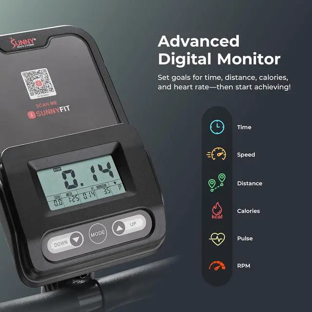 PERSONALIZED TRAINING, ADVANCED DIGITAL MONITORPersonalize your training by setting goals for time, distance, calories, and heart rate with the advanced digital monitor, while tracking your progress in real-time. Equipped with a built-in pulse sensor for precise workout metrics.