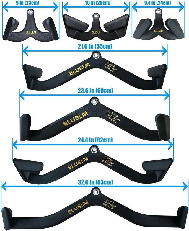 7-Piece T Bar Row Attachment Set: This cable attachment bar set includes 7 different strength training bars, ranging from long to short, to meet various workout needs